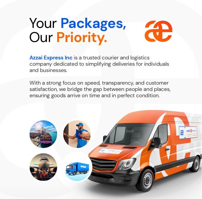 Azzai Express Inc is a trusted courier and logistics company dedicated to simplifying deliveries for individuals and businesses. With a strong focus on speed, transparency, and customer satisfaction, we bridge the gap between people and places, ensuring goods arrive on time and in perfect condition.